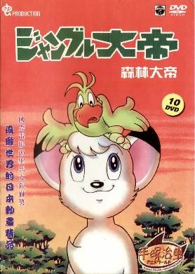 A second set of Jungle Emperor DVDs has surfaced from China, this one also boasting of English subtitles. The packaging on this one is of higher quality, and bears the logos of both Nippon Columbia and Tezuka Osamu Animation World, giving the impression that this set may be officially licensed. However, the English subtitles are exactly the same as on the first set from China, mentioned above, which means they are next to useless. This new set does have English subtitles on all 10 discs (unlike the other set), for what little that's worth. This new set, however, made a major technical error in setting the "widescreen flag" on each disc, which tells your DVD player that the programs on the disc are in widescreen (letterbox) format! This means that the picture comes out "squashed" vertically. If you have a normal TV, you may get a normal picture while playing these by changing your DVD player settings to widescreen (which would normally "squish" the picture horizontally).